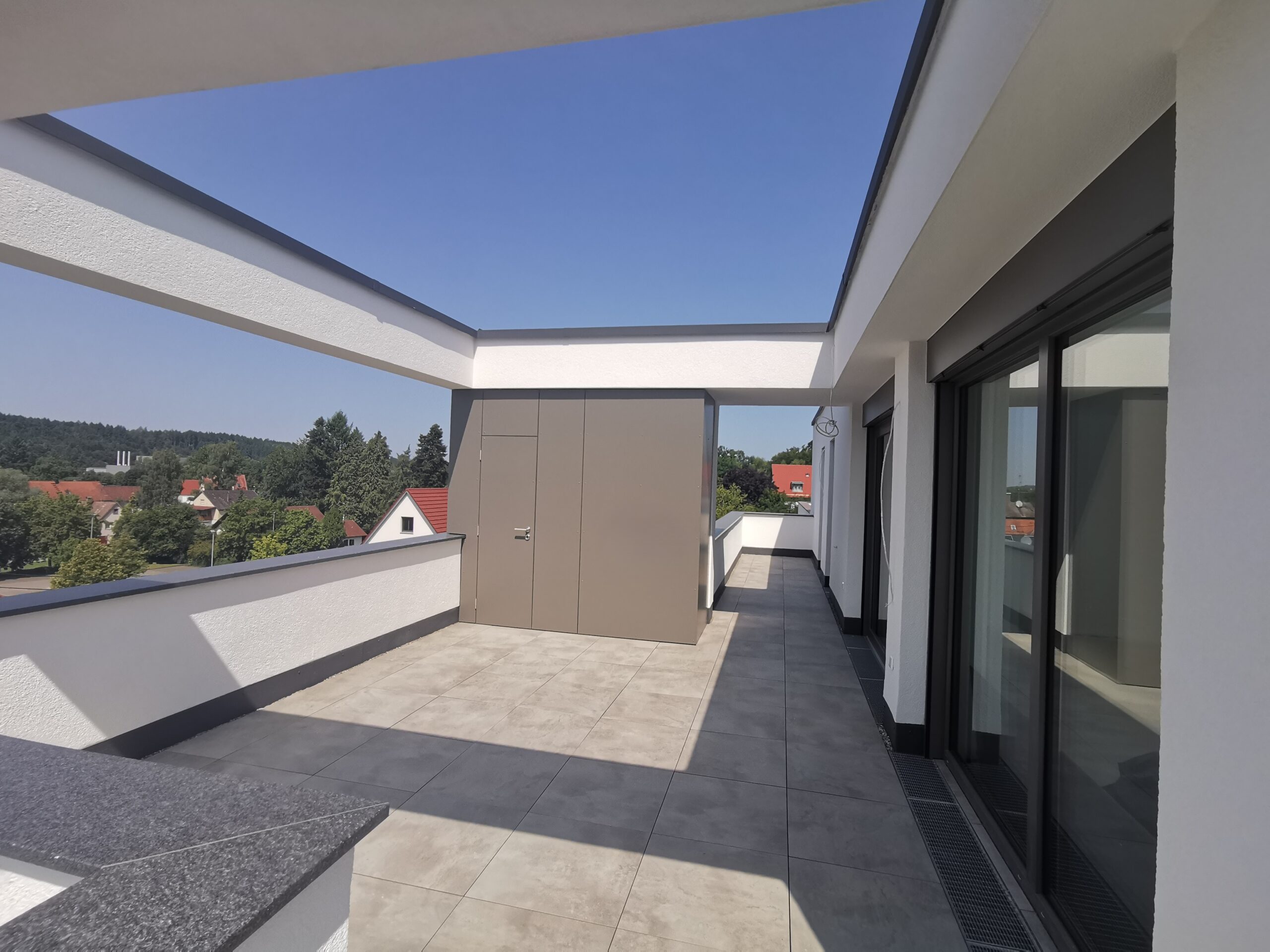 Im Erdgeschoss ergänzt ein Gartenanteil die Wohneinheiten. In den oberen Geschossen locken überdachte Terrassen und Balkone nach draußen – und natürlich verbindet ein Aufzug sämtliche Stockwerke. Beide Gebäude erfüllen alle Schallschutzbestimmungen, die maximale Ruhe in den eigenen vier Wänden garantieren.
